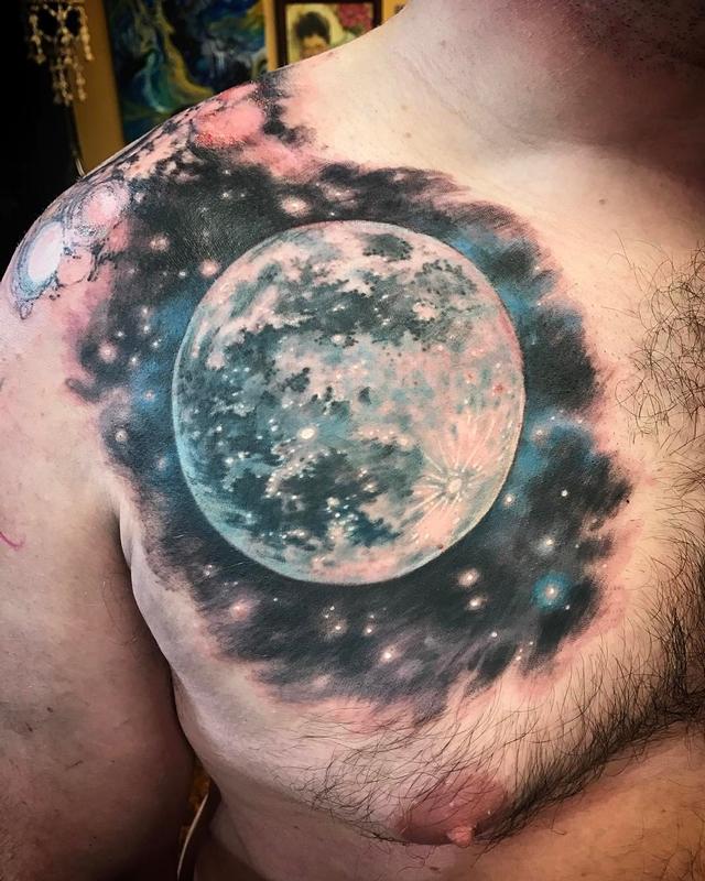 Realistic Moon On Chest By Alex Vidaud Tattoonow